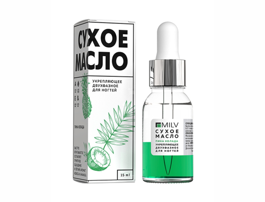 Сухое масло двухфазное для ногтей Пино Колада" MILV 15мл"