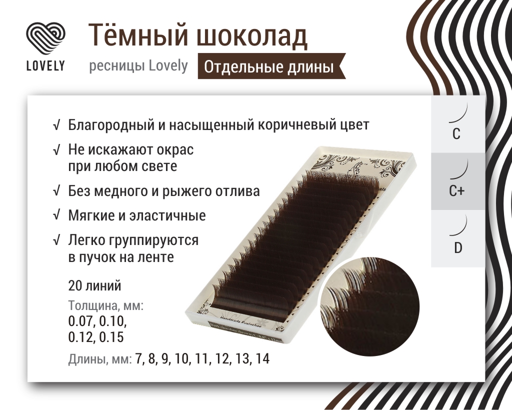 Ресницы Lovely Темный шоколод"-20 линий (D 0.07 10мм)"