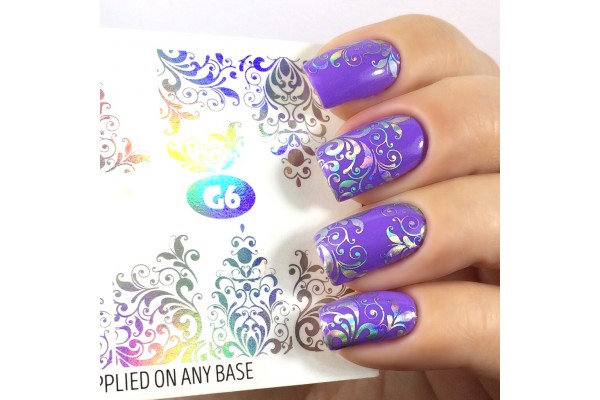 5. Положите слайдер на салфетку, смоченную теплой слегка горячей (не холодной!) водой, приблизительно на 15-20 секунд. Поднесите к ногтю, и методом сдвига, сдвиньте пленку с бумажной основы на 1/3, прижимая пленку у основания кутикулы, оставляя запас у линии кутикулы 0,5-1мм, удалите подложку полностью. Расправьте пленку, немного подтягивая, избегая образования складок. Аккуратно разгладьте пленку, выталкивая остатки воздуха и воды с помощью мягкой салфетки. Просушите ногти со слайдером в лампе.