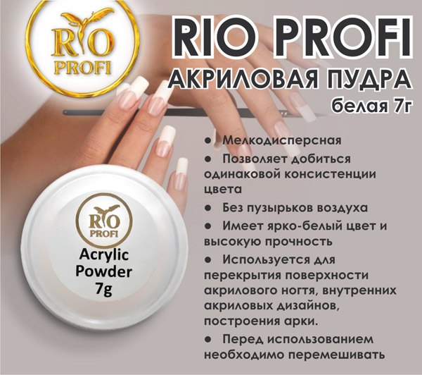Акриловая пудра №2 белая RIO PROFI 7гр