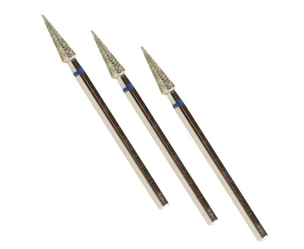 Алмазная фреза в форме иглы применяется в аппаратном маникюре и педикюре для обработки птеригия, околоногтевых пазух и боковых валиков, поднятия неприлегающей кутикулы, раскрытия синусов, придания формы свободному краю ногтя. Диаметр: 3,3 мм. Длина рабочей части: 10 мм.