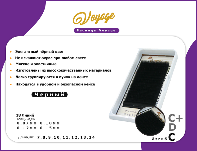 Ресницы черные Voyage 18 линий (C 0.15 10мм)
